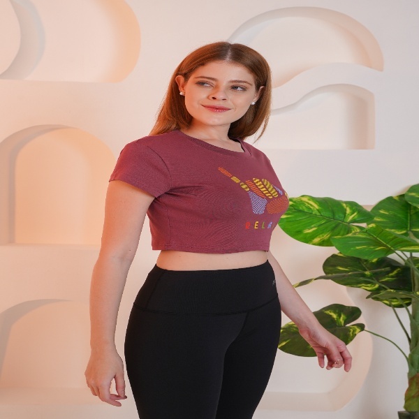 (REFAH) GIRLS R-NECK CROPPED TEE MAROON