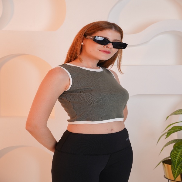 (REFAH) GIRLS ROUND NECK TANK OLIVE
