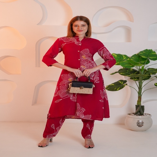 (REFAH) ALINE KURTI 2PCS SET REDPRINT