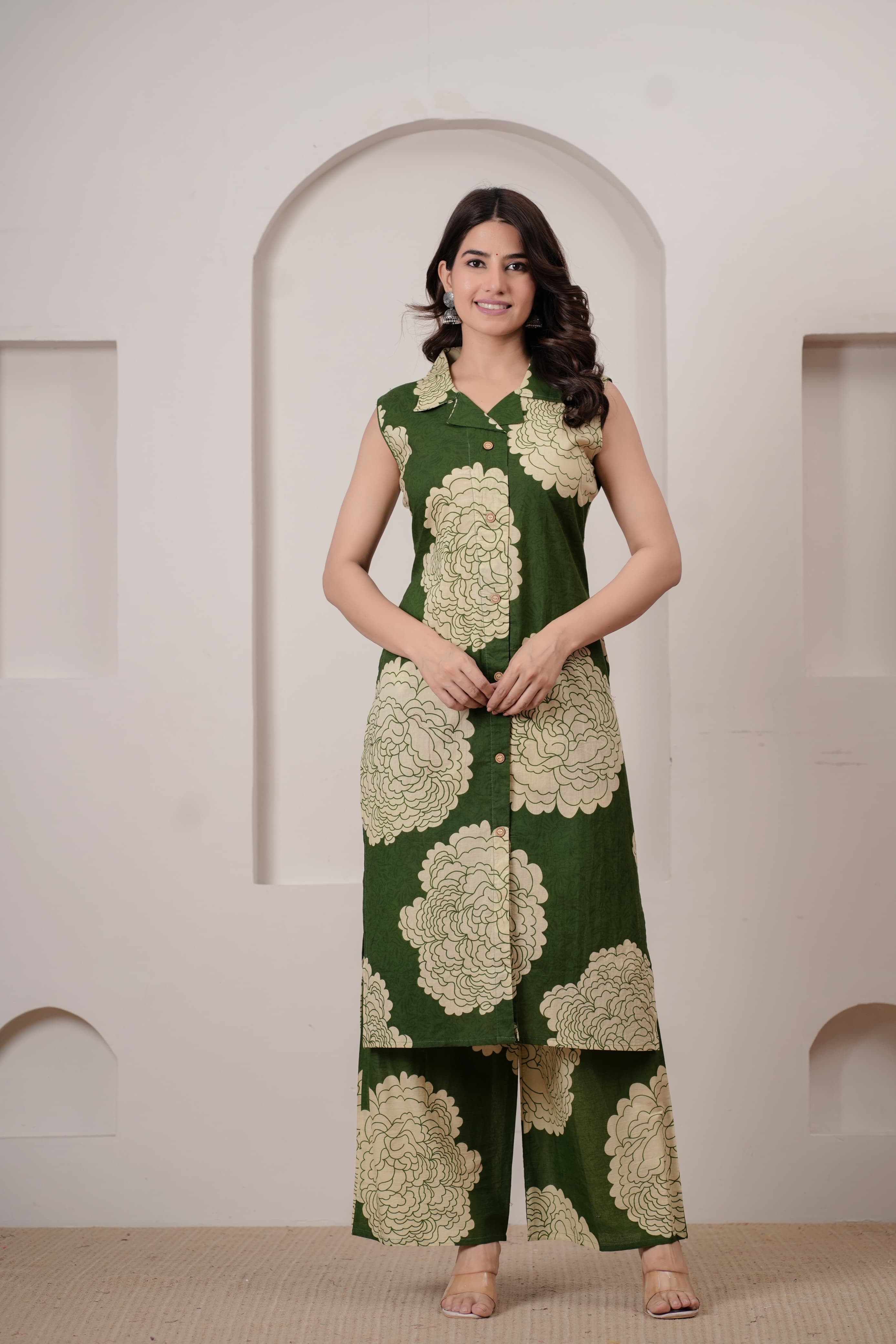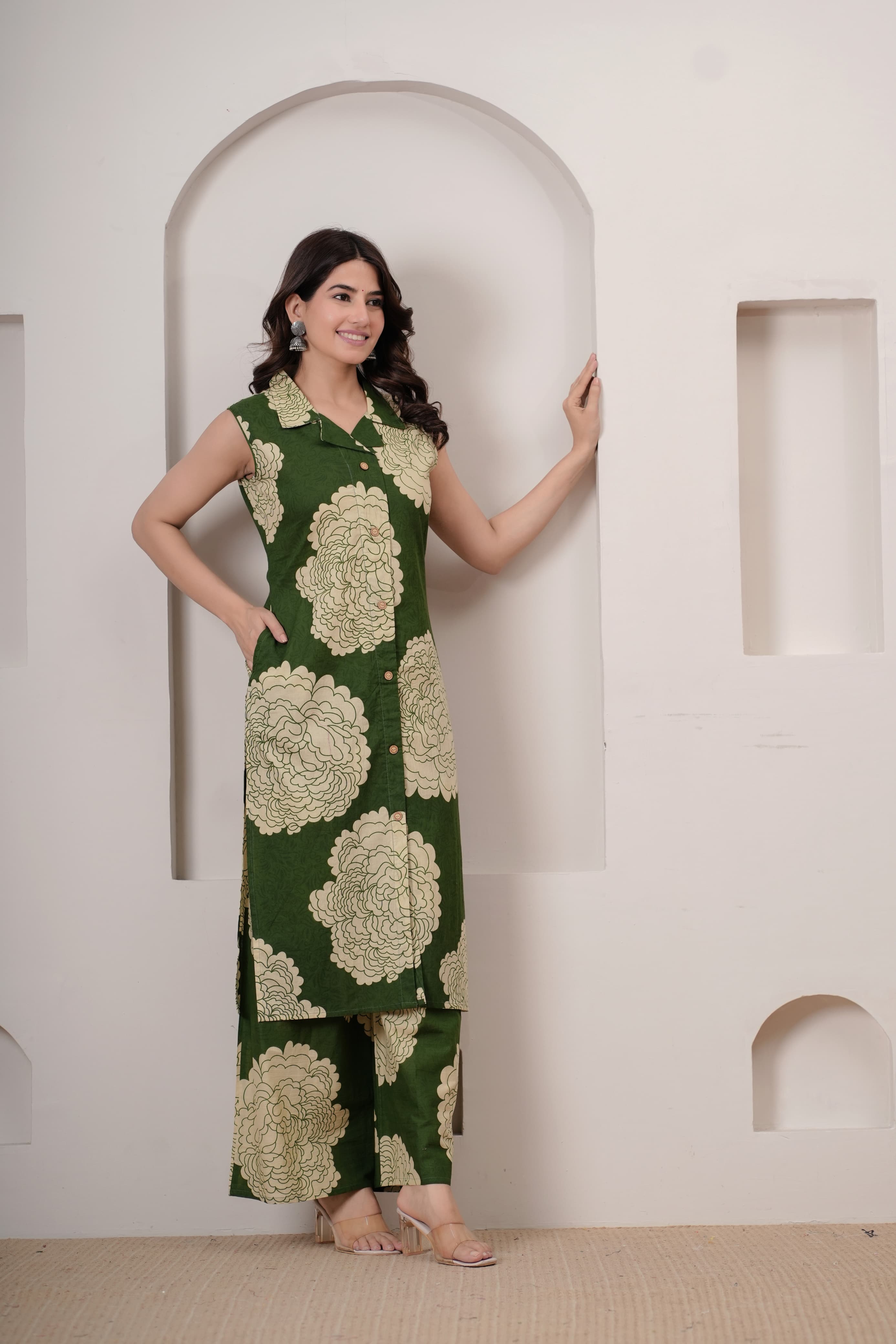 (REFAH) ALINE KURTI 2PCS SET GREEN PRINT