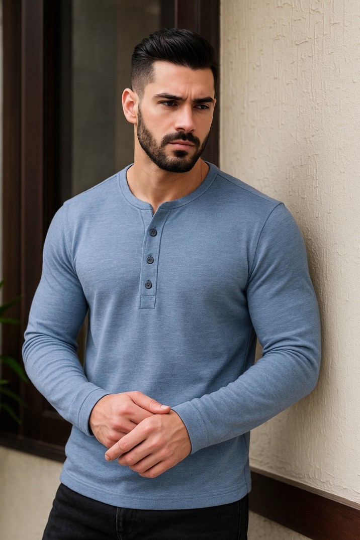NWC HENLEY T-SHIRT BLUE CLOUR