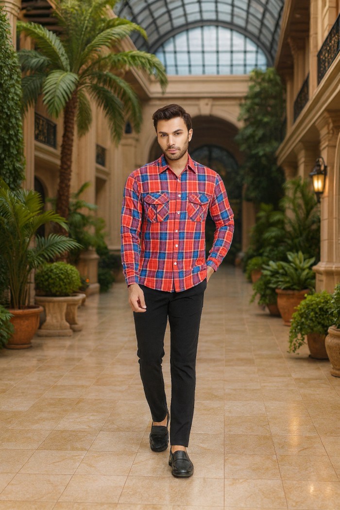 KINGS COUNTY MENS SHIRT ORANGE CHECK
