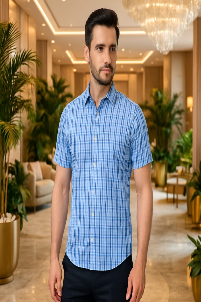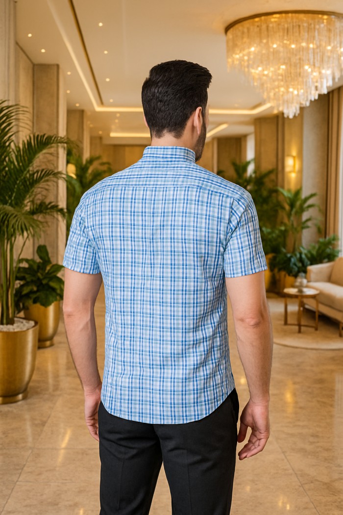 4 CORNERS HALF SLEEVE BLUE TARTAN CHECK