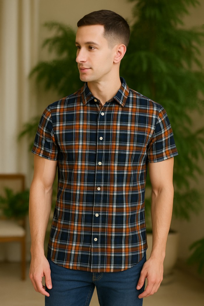 KINGS COUNTY HALF SLEEVE NAVY CHECK
